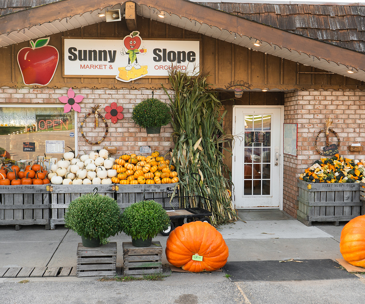 Sunny Slope Orchard is full of fresh produce, quality syrups, baked goods, deli goods, and sweets. In the orchard, there are over 30 varieties of apples that ripen from August into October. There are also 6 acres of peaches that are ready in pick in August and 3 acres of strawberries that ripen in June.
